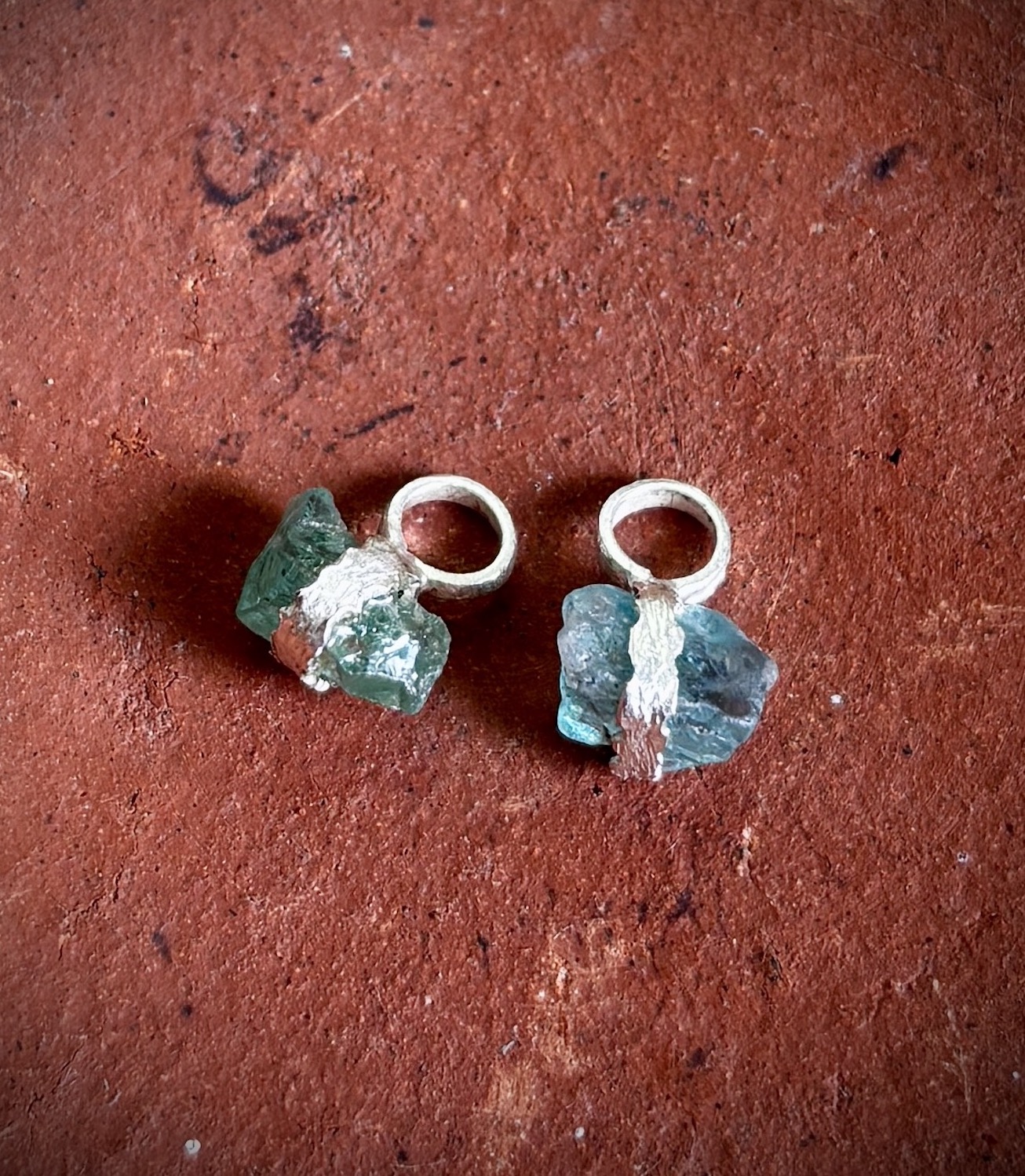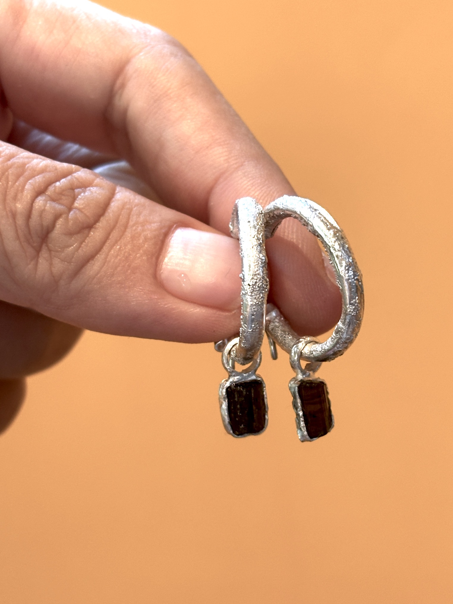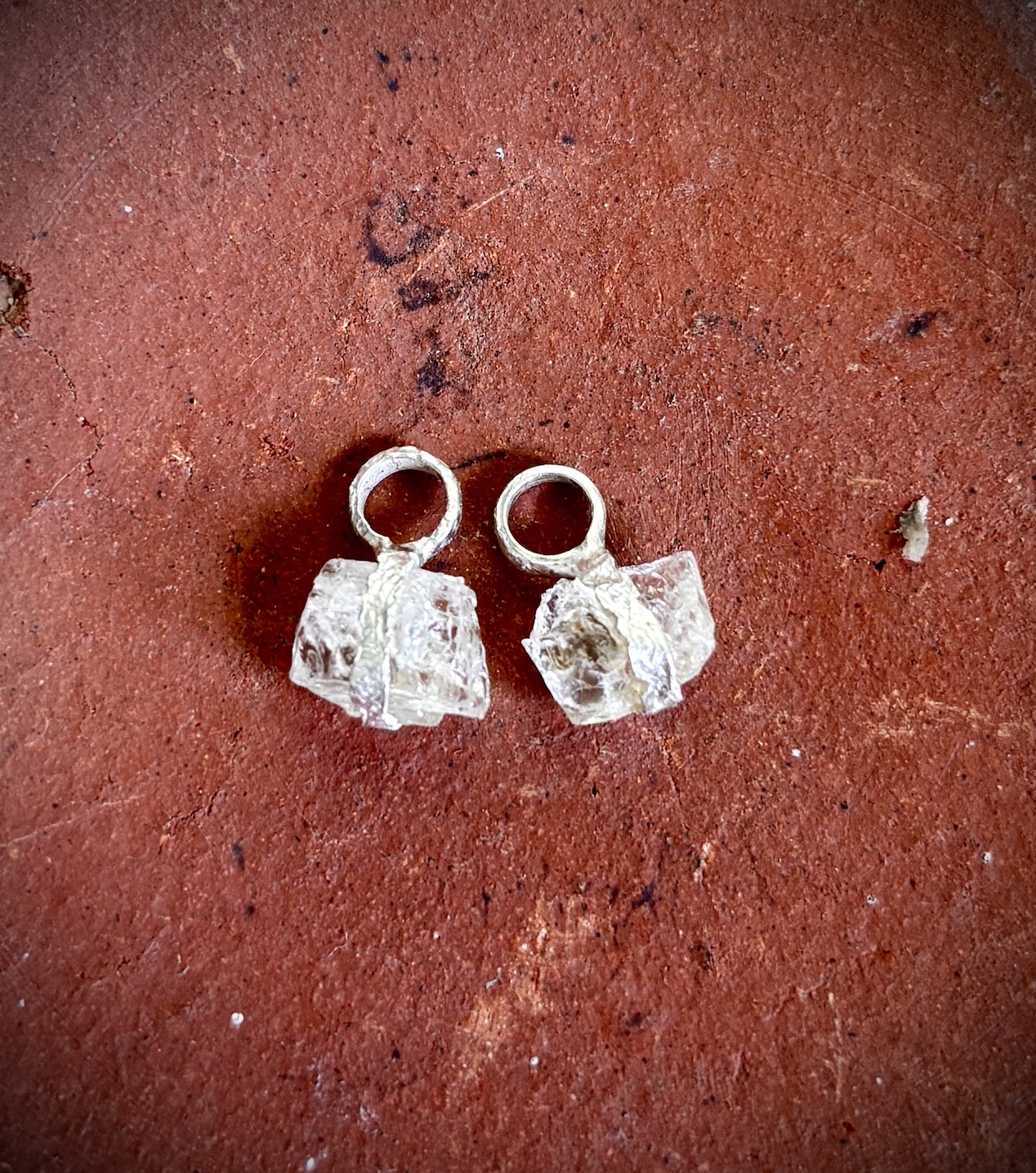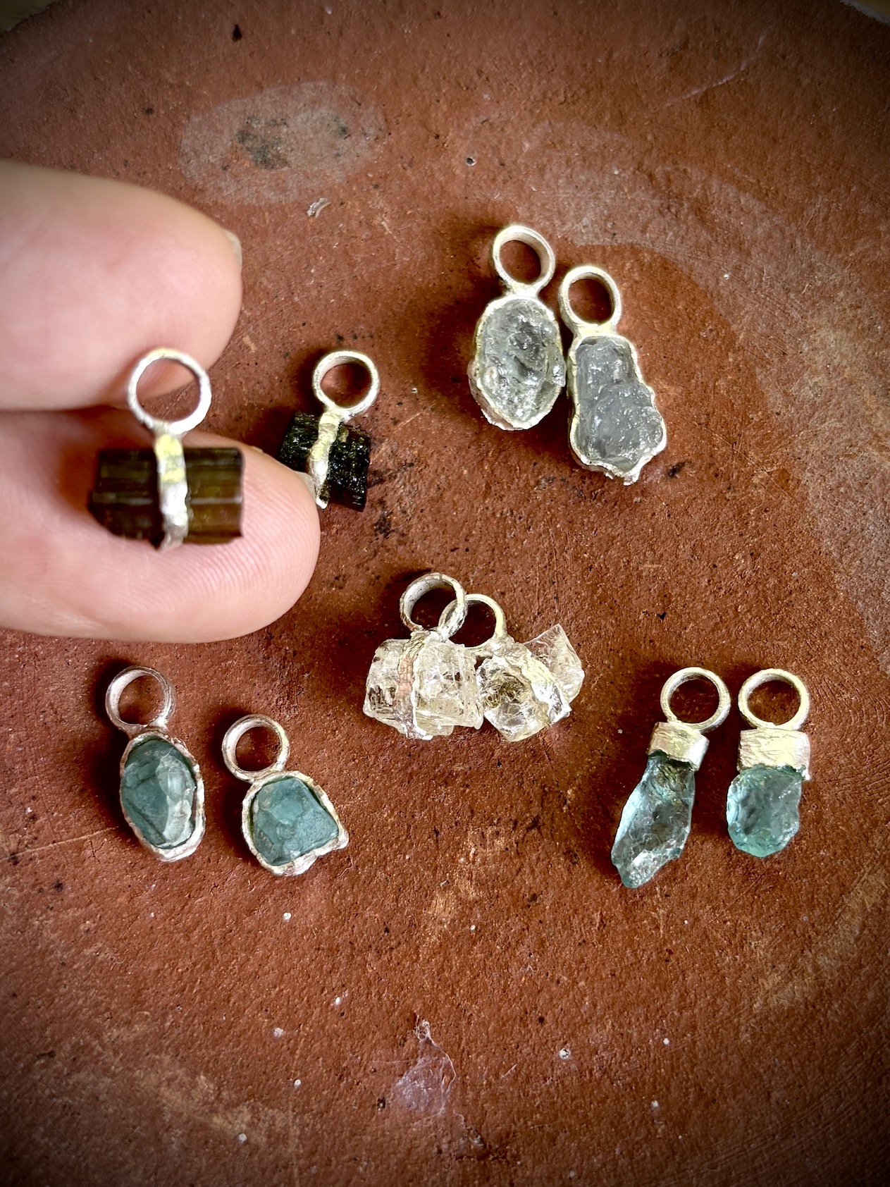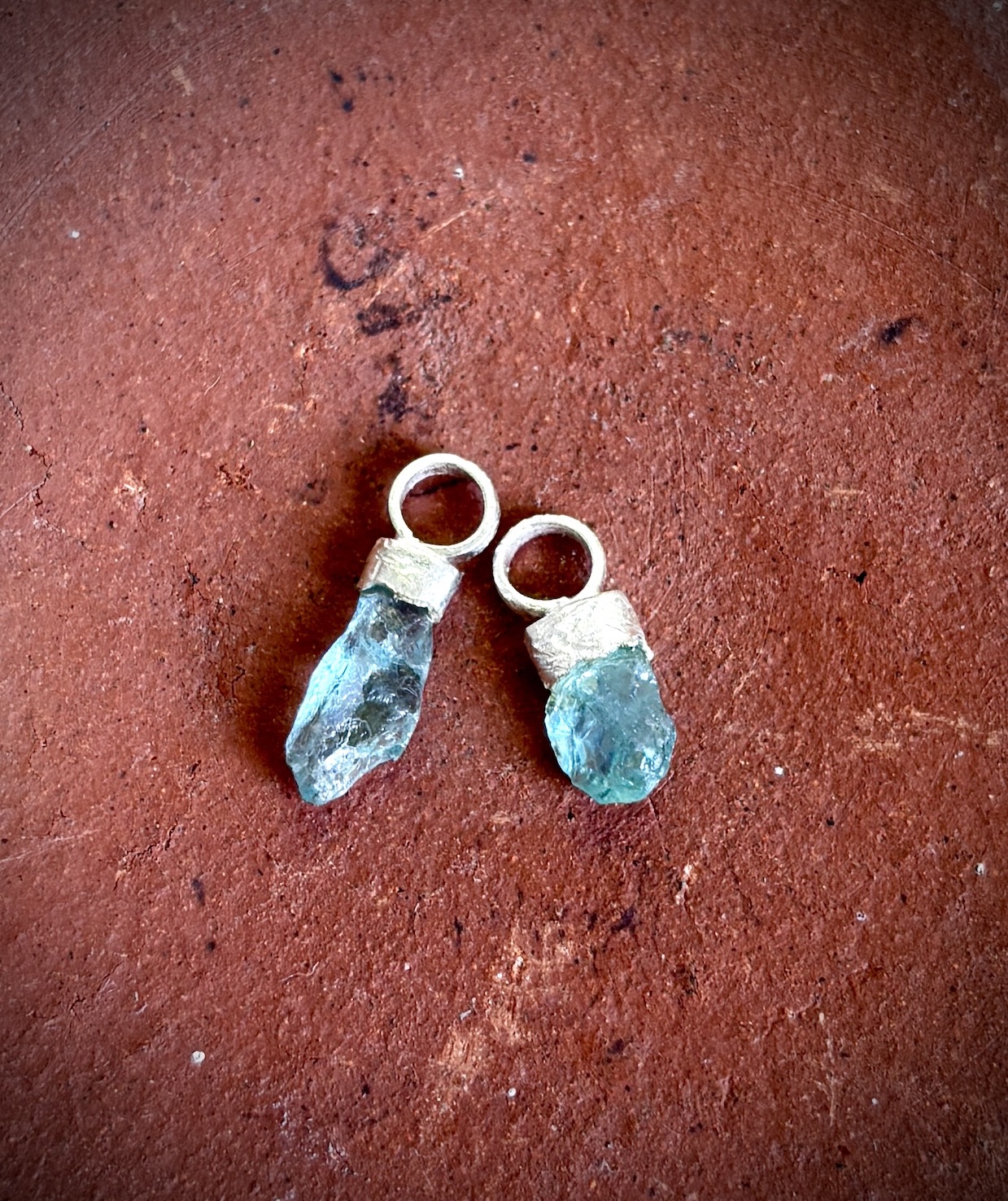 A versatile earring collection designed for those who love to ix & match and have a bit of fun! Start with  a small hoop with a rough, artisanal finish & a rustic Sparkly Stud. Then, personalize your look with a selection of one-of-a-kind raw crystal charms—Herkimer Diamond, Crystal Quartz, Red Garnet, Aquamarine, Black Tourmaline, Blue Apatite, or Yellow Topaz. Each charm is handmade and unique, just like you!