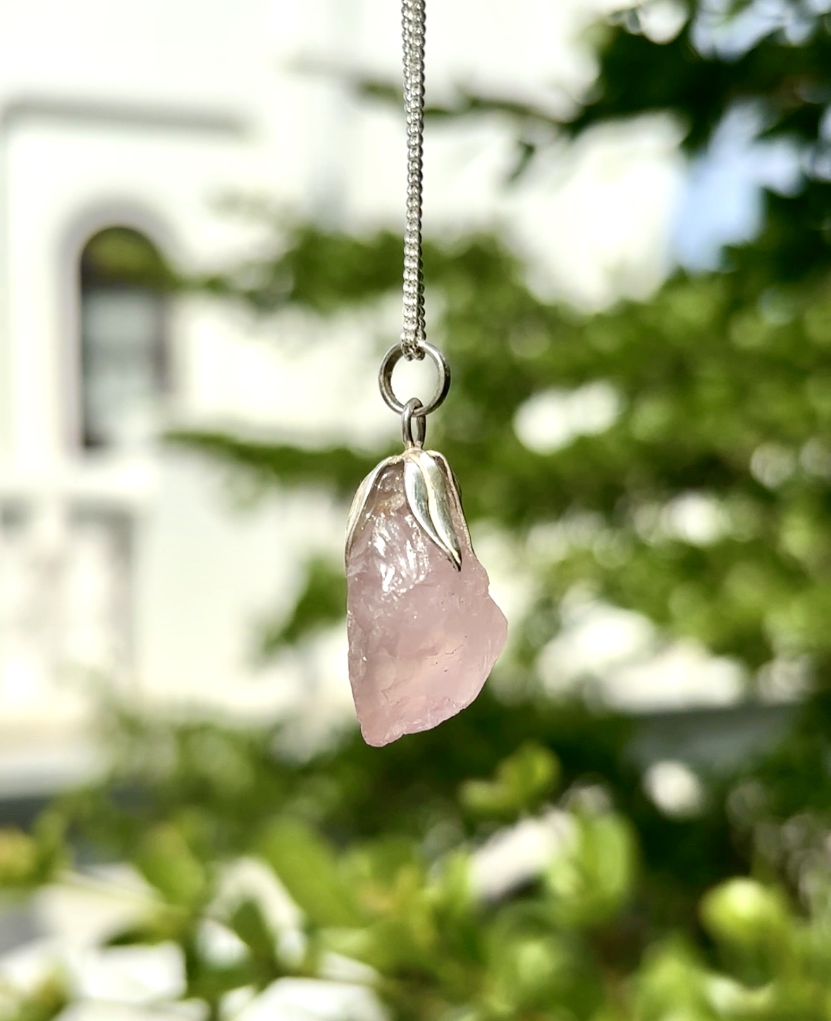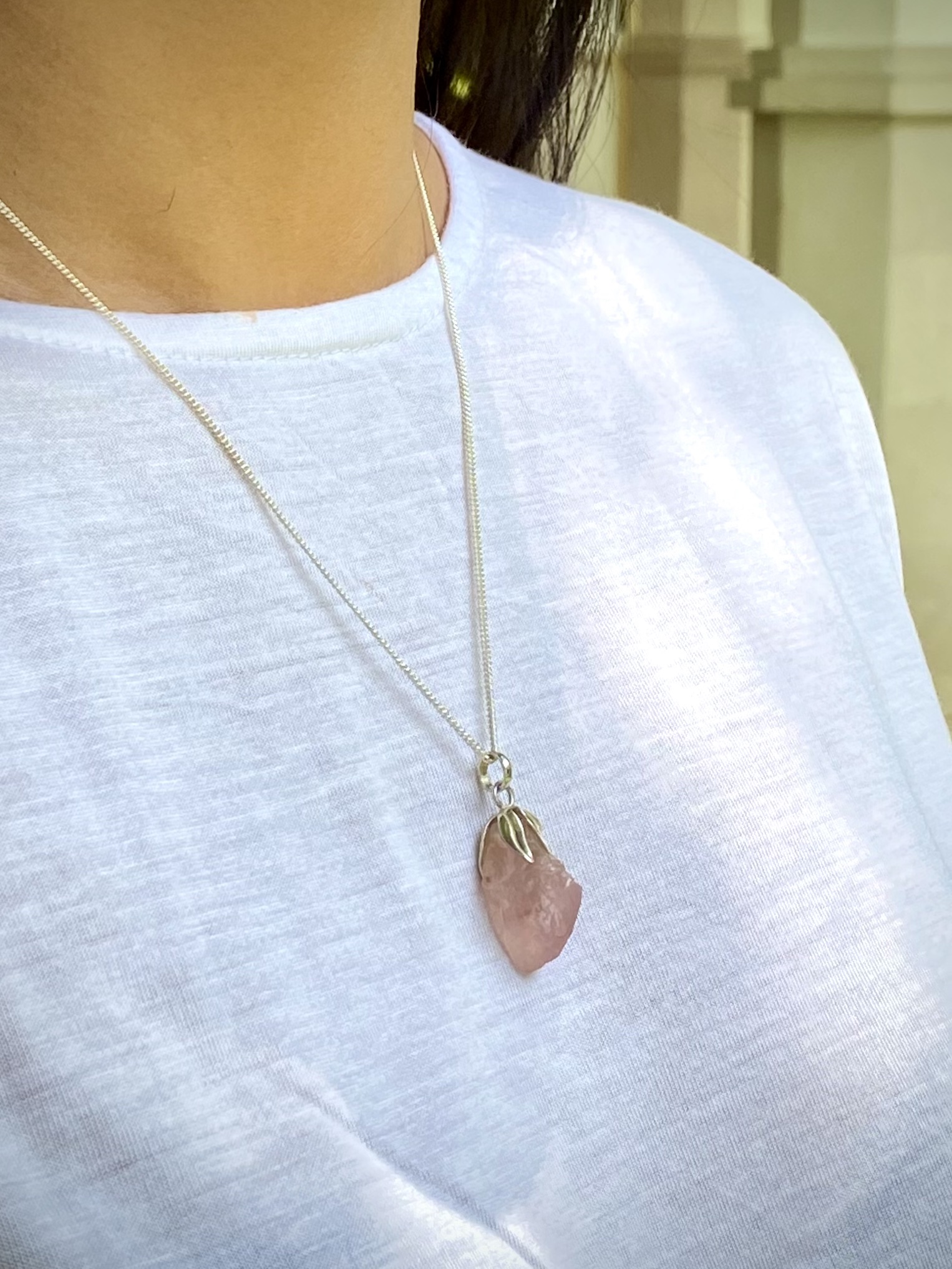 Petals of Love: Handcrafted Raw Rose Quartz Pendant