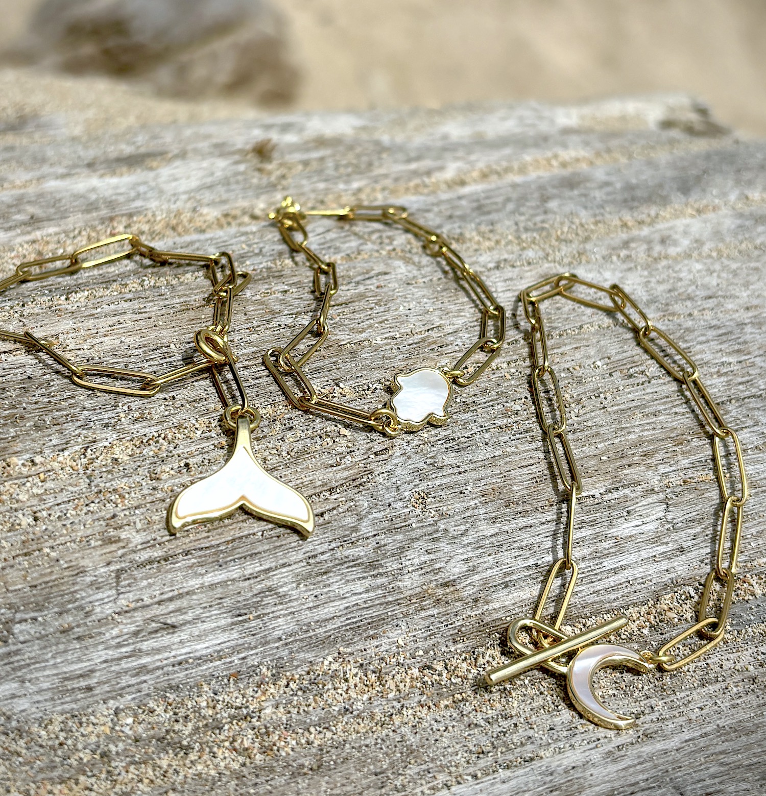 – The Crescent Moon closure is made with Shell, enveloped in gold plated rims.